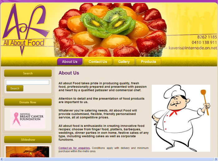 The All About Food, Catering website is created using the WordPress platform, which provides a Content Management System. It allows the user to edit the content of the website using a Text Editor and Media Manager. It also provides good support for Search Engine Optimisation to rank the website higher on Google search engine.