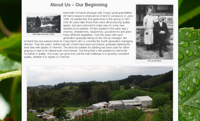 The Harrisville Orchards website is created using the WordPress platform, which provides a Content Management System. It allows the user to edit the content of the website using a Text Editor and Media Manager. It also provides good support for Search Engine Optimisation to rank the website higher on Google search engine.