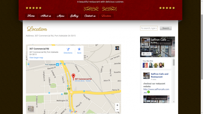 The Saffron Cafe & Restaurant website is created using the WordPress platform, which provides a Content Management System. It allows the user to edit the content of the website using a Text Editor and Media Manager. It also provides good support for Search Engine Optimisation to rank the website higher on Google search engine.