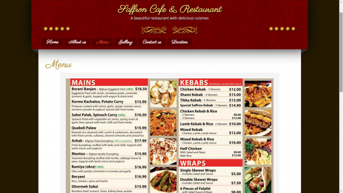 Checkout the website for Saffron Cafe & Restaurant… This is a beautiful restaurant with delicious cuisines from Afghanistan and Middle East.